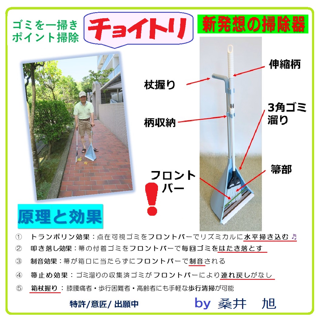 *チョイトリ:新発想掃除機具 箒不着ゴミ落とし機能付チリ取り